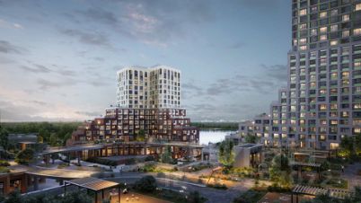 Второй - частное пространство для отдыха жильцов с концептуальными детскими и спортивными зонами. Наслаждайтесь видами на озеро со смотровой площадки и прогулками среди зелёных композиций.