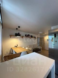 Пространство организовано функционально: кухня площадью 6 м² совмещена с гостиной и оснащена современной техникой, включая холодильник и посудомоечную машину.