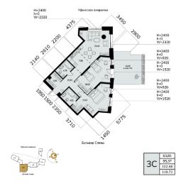 Жилая площадь 63.81 кв. м. от ГК "Первый Трест".