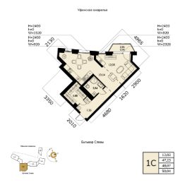 Общая площадь 48.07кв.м.;