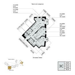 Жилая площадь 63.64 кв. м. от ГК "Первый Трест".