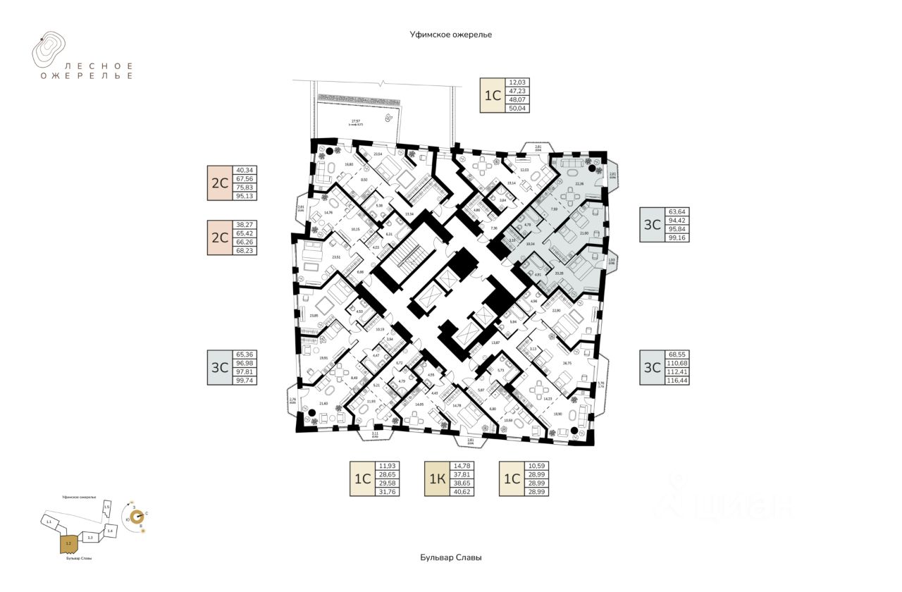 Литер 1, Секция 2. 3-й этаж 25- этажного жилого дома