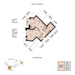 Общая площадь 66.26кв.м.;