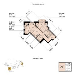 Общая площадь 63.14кв.м.;