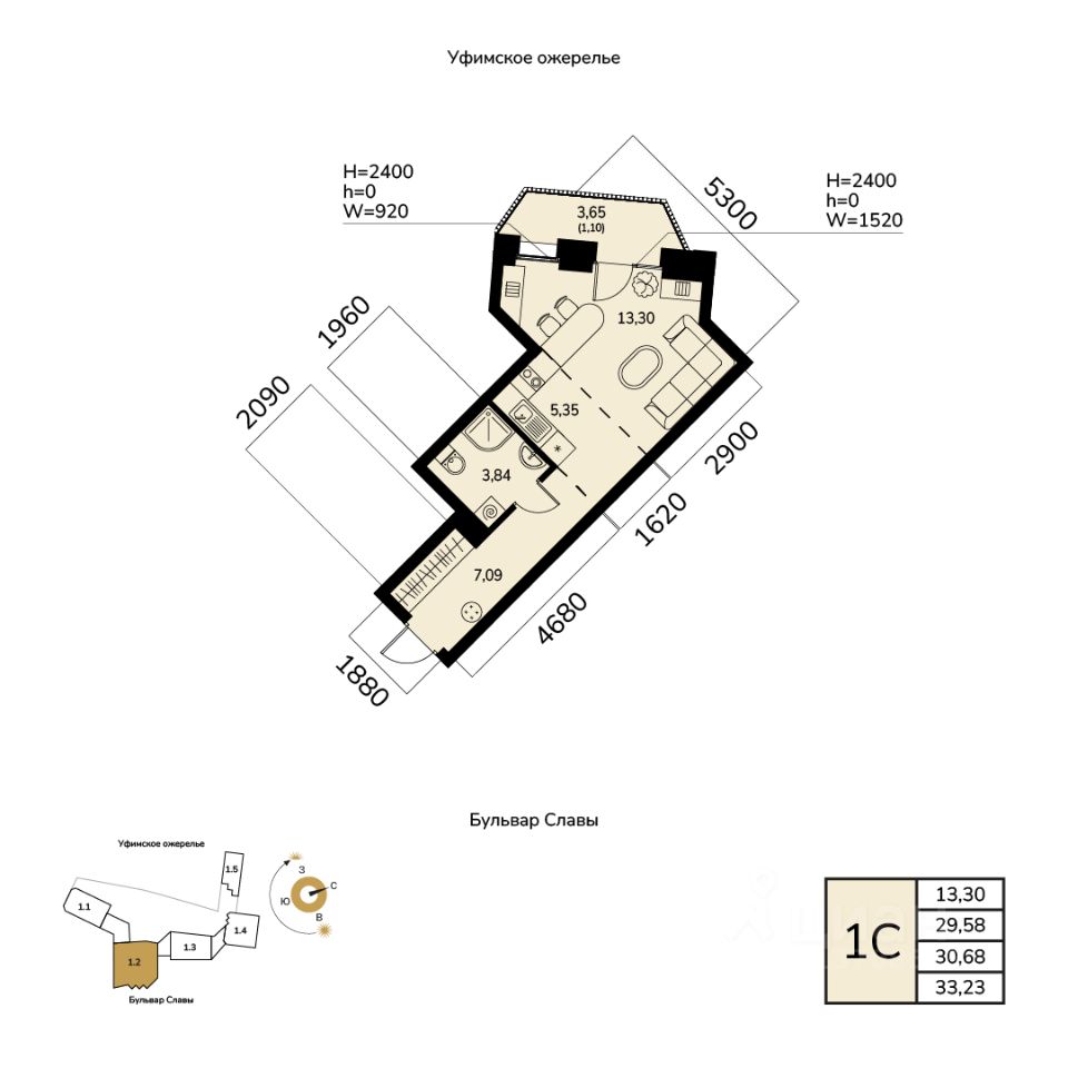 Жилая площадь 13.30 кв. м. от ГК "Первый Трест".