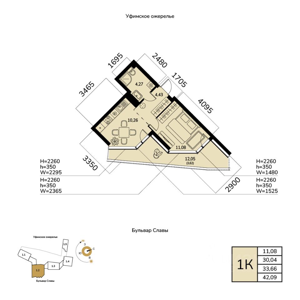 Общая площадь 33.66кв.м.;