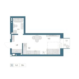 • Общая площадь: 28.6м²