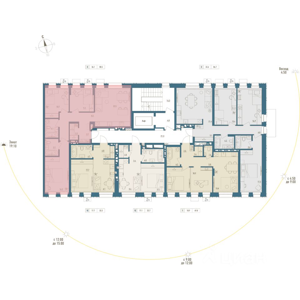 • Общая площадь: 80.5м²