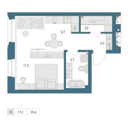 • Общая площадь: 35.6м²
