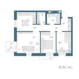 • Общая площадь: 66.4м²