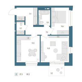 • Общая площадь: 59.2м²