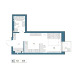 • Общая площадь: 28.8м²