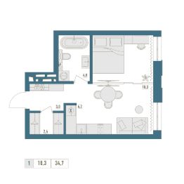 • Общая площадь: 34.7м²