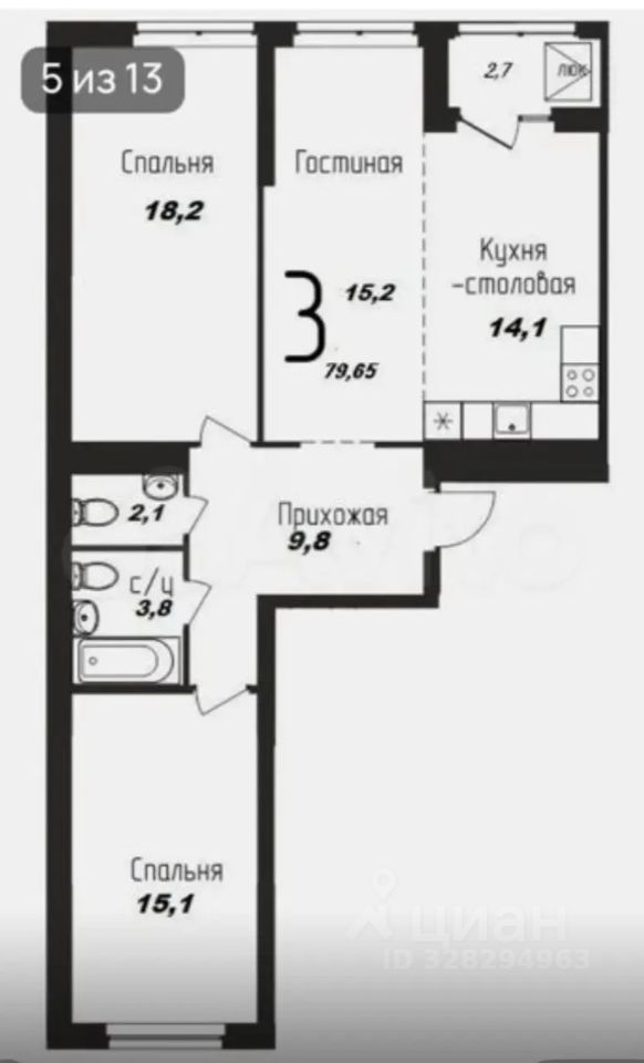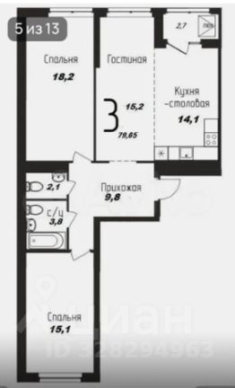 В продаже светлая трехкомнатная квартира-распашонка площадью 78,3 м² в востребованном жилом комплексе Свобода.