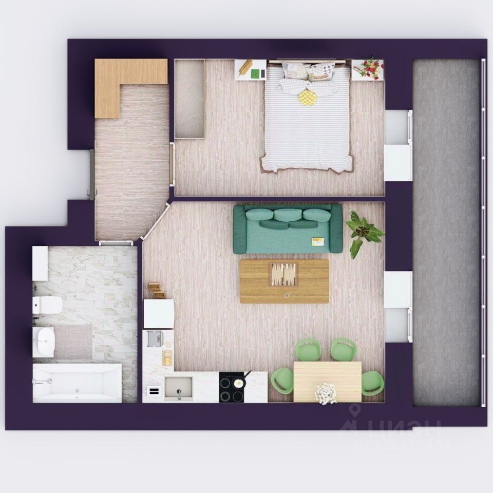 лоджия — 3,49 кв.м.,