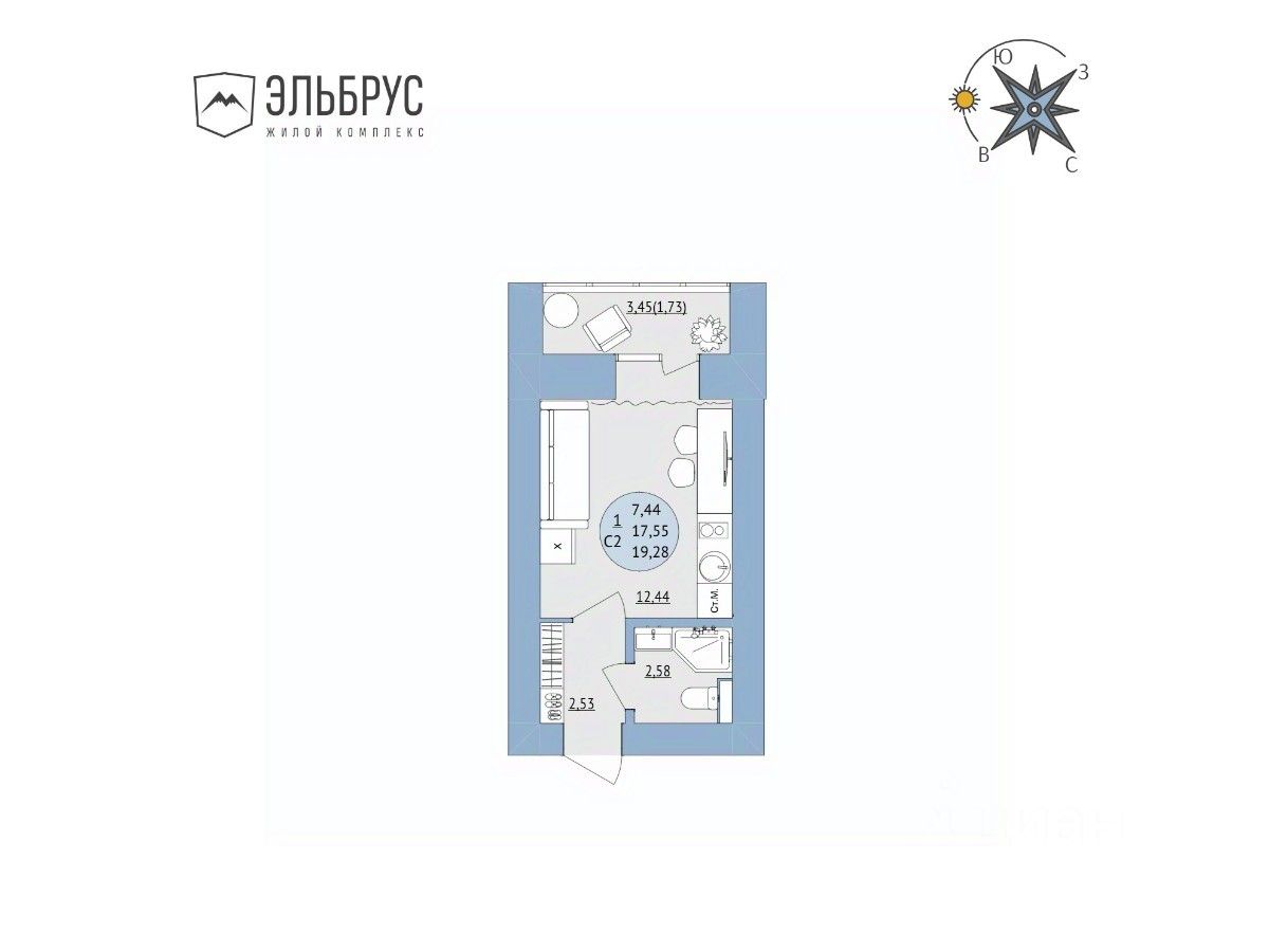 Продажа квартир от застройщика в новом жилом комплексе "Эльбрус"! Сдача в 2027 году. Кирпичный дом в самом зеленом районе Уфы. Рассрочка без процентов! Продается квартира-студия в ЖК "Эльбрус": общая площадь квартиры — 19,28 кв.м., прихожая — 2,53 кв.м., жилая зона — 12,44 кв.м., санузел совмещенный — 2,58 кв.м., лоджия — 3,45 кв.м., высота потолков — 2.5 метра. Отделка предчистовая: сухая стяжка пола, стены выровнены по маякам, улучшенная штукатурка (светлая), металлическая усиленная входная дверь. Проведена разводка: розетки, выключатели. Позвоните или напишите сообщение, чтобы узнать подробнее о жилом комплексе. Мы проконсультируем и подберем планировку, подходящую по всем вашим параметрам! Преимущества В строящемся жилом комплексе "Эльбрус" вы можете купить квартиру от застройщика на самых выгодных условиях и с большим количеством преимуществ: Дом из кирпича. Благоустроенная территория. Готовая и развитая инфраструктура. Колясочная на цокольном этаже. Закрытая детская игровая внутри дома. Коворкинг и фитнес-зал в доме. Паркинг Широкий выбор квартир: от небольших и уютных однокомнатных до просторных четырехкомнатных квартир с террасами. Добавьте объявление в избранное, чтобы не потерять его!