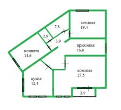 Комнаты- 27,5; 14,6; 19,4квм