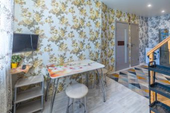 Общая площадь — 41,5 кв.м., за счет высоты кажется больше. Первый этаж: зона кухни, спальня, санузел. Второй этаж — просторное открытое пространство, которое можно оформить по своему вкусу, тут же большая гардеробная с окном — место для всего и вся!