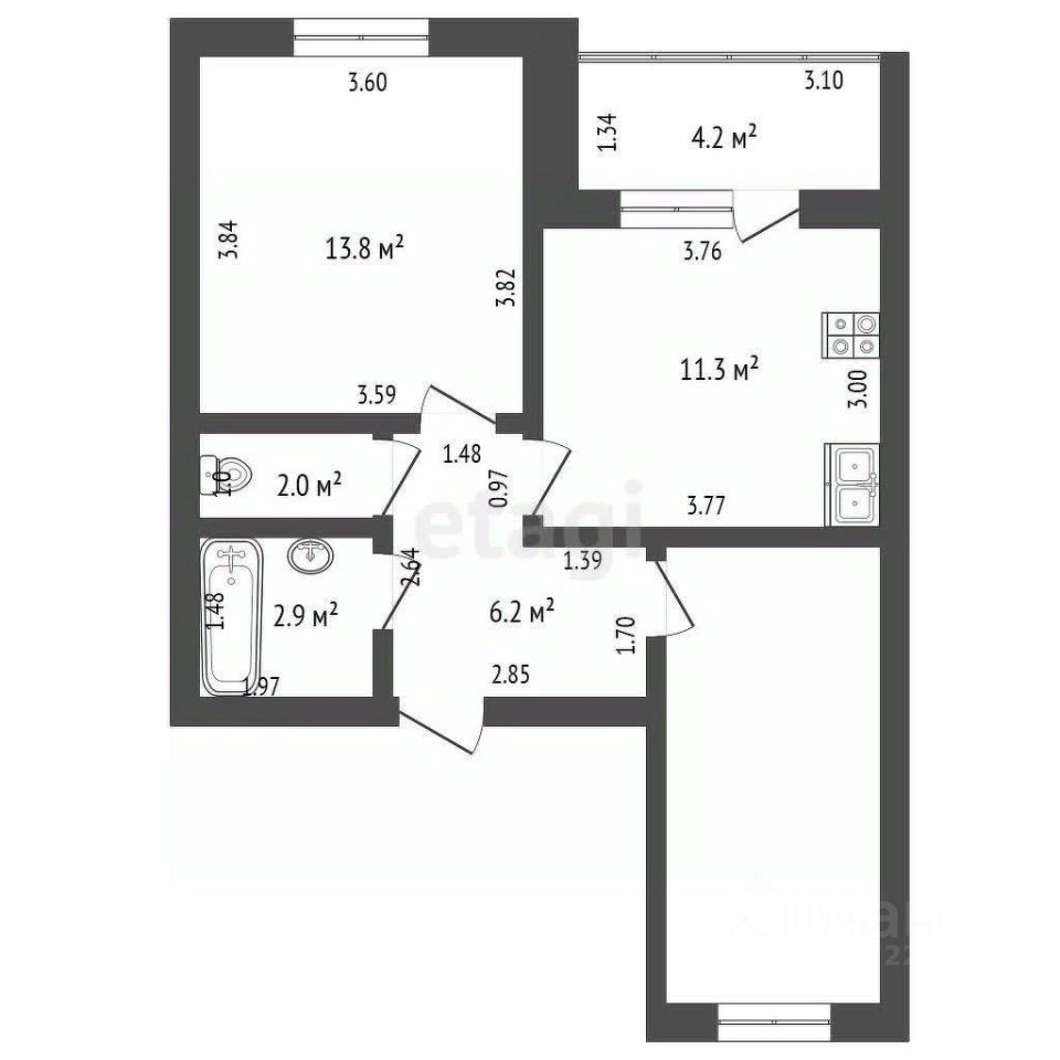 - Кухня - 11,3 кв.м