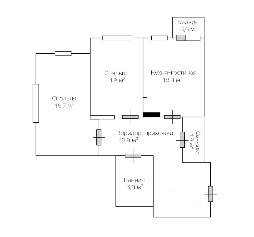 18,4 м²