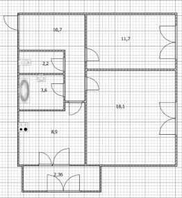 Плoщадь: 57,36 м²