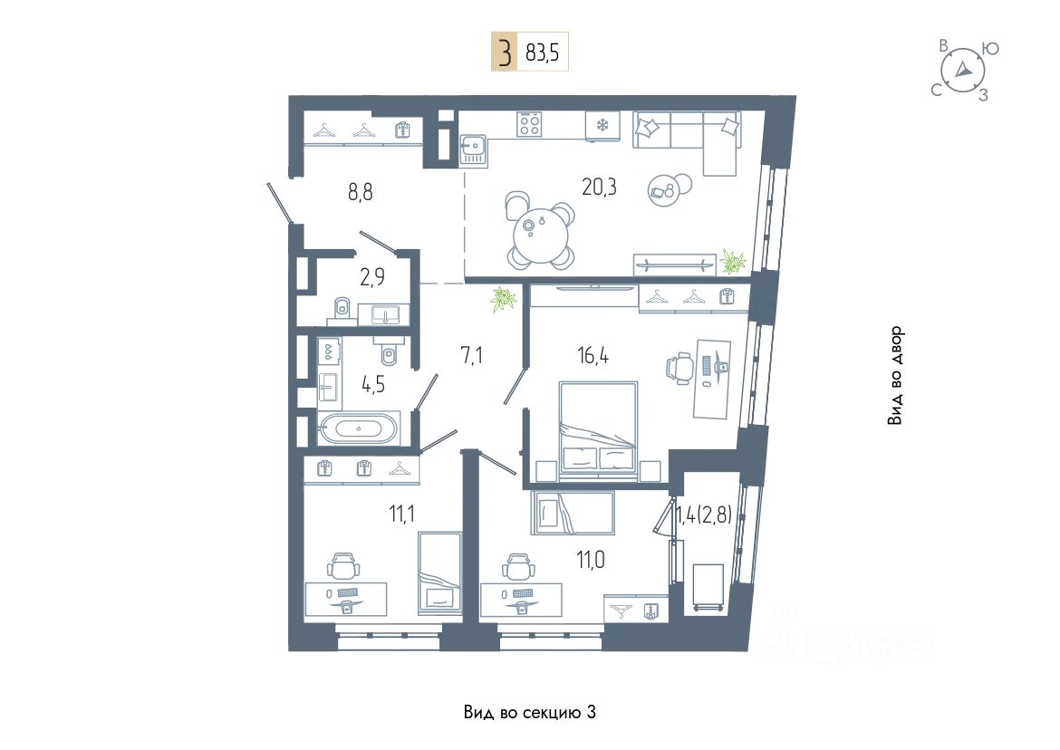 Продаётся 3-комнатная квартира в строящемся доме (дом 1), срок сдачи: III-кв. 2026, общей площадью 83.5 кв.м., на 13 этаже. Новый жилой комплекс "АУРУМ" от застройщика "СтроиТЭК" расположен по адресу Республика Башкортостан, Уфа, Комсомольская улица.
