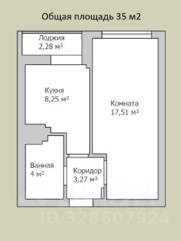 - Площадь квартиры с учётом лоджии 35 кв.м.