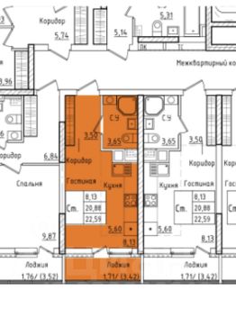 22,59 м²