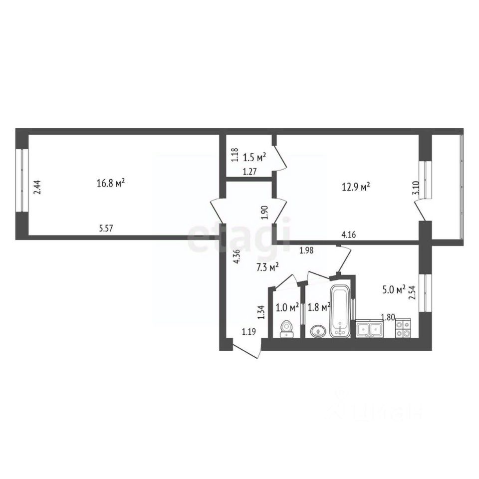 Квартира оснащена всеми необходимыми коммуникациями: центральное отопление, центральное водоснабжение и канализация, газовый котел для горячего водоснабжения, исправные счетчики и газовая плита. Дополнительное преимущество — наличие кладовой, которую можно оборудовать под гардеробную или использовать для хранения вещей.
