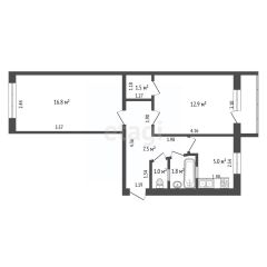 Общая площадь квартиры составляет 46,2 кв.м.