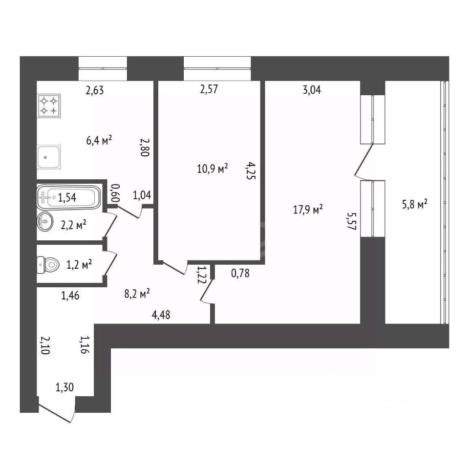 6,4 м²