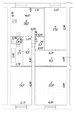2. Комнаты: 21,0м2, 17,2м2, 13,5м2