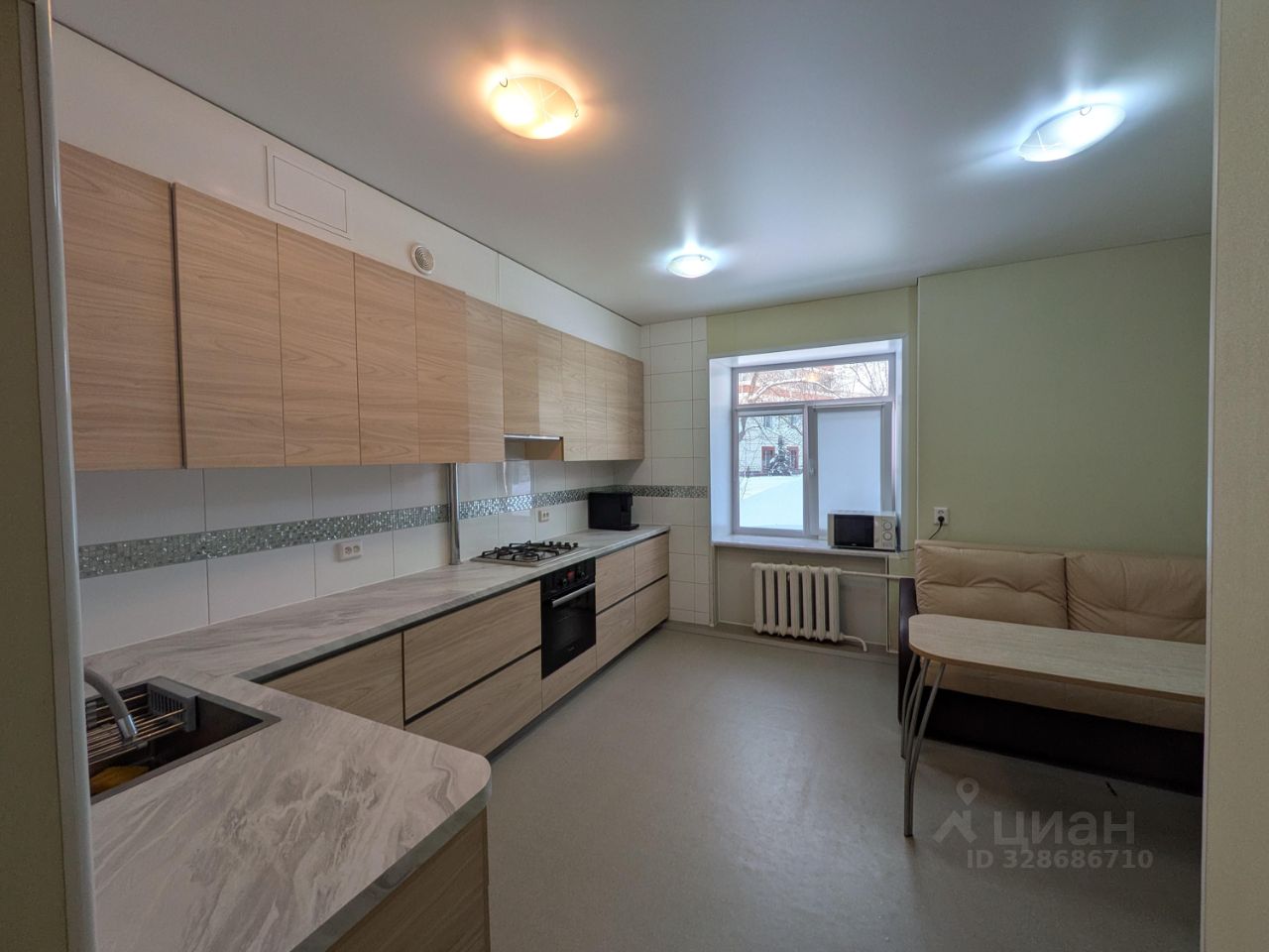- новая современная встроенная кухня с бытовой техникой (газовая варочная панель, духовой шкаф, вытяжка, посудомоечная машина)