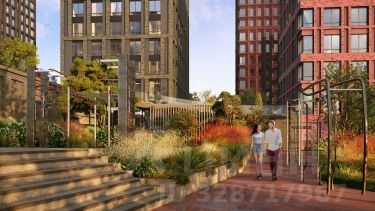 Входные группы оформлены элегантно и продуманно. Акцентные элементы, ландшафтные композиции и представительская зона в стиле эко-лофт создают эффект "портала" в приватный мир комплекса.