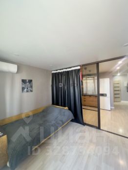 Комната зонирована раздвижными дверями (разделяя спальню и гостиную).
