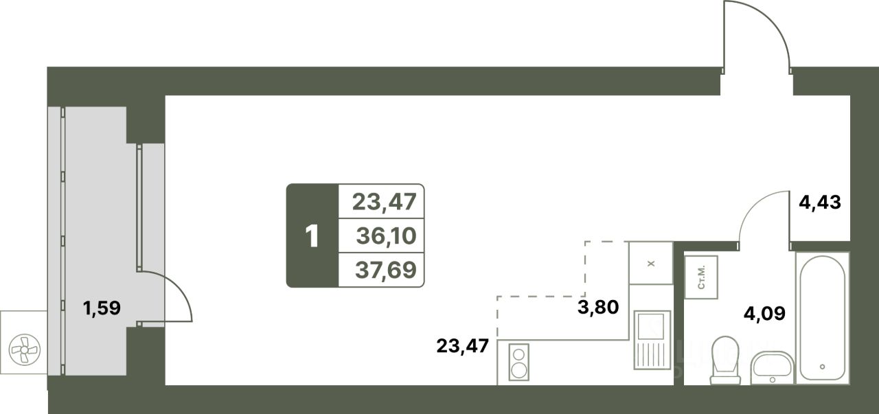 Продается - студия в ЖК "Свой Берег" от ГК "Архстрой Групп". 7-й этаж 8-этажного жилого дома, общая площадь 37.69 кв.м., жилая площадь 22.53 кв.м. Отделка получистовая.