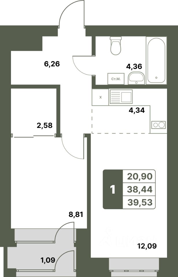 Продается 1-к-комнатная квартира в ЖК "Свой Берег" от ГК "Архстрой Групп". 1-й этаж 12-этажного жилого дома, общая площадь 39.53 кв.м., жилая площадь 20.9 кв.м. Отделка получистовая.