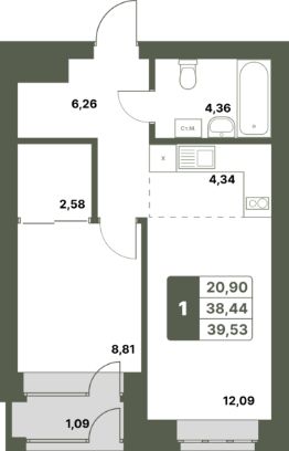 39,53 м²