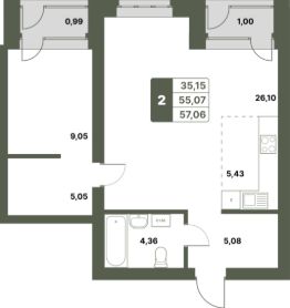 Продается 2-к-комнатная квартира в ЖК "Свой Берег" от ГК "Архстрой Групп". 1-й этаж 6-этажного жилого дома, общая площадь 57.06 кв.м., жилая площадь 35.15 кв.м. Отделка получистовая.