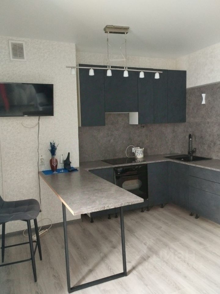 Кухня-гостиная оборудована всей необходимой техникой. Встроенные шкафы обеспечивают много места для хранения, все что на фото, вся техника и мебель остаются в квартире.