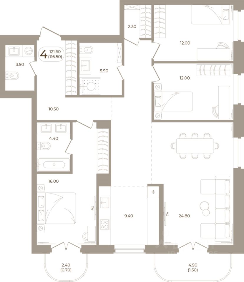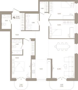 Продаётся 4-комнатная квартира в строящемся доме (Мира,70 (Корпус 1)), срок сдачи: III-кв. 2028, общей площадью 116.5 кв.м., на 6 этаже. Здесь стены - это не границы, а связующая нить времен.
