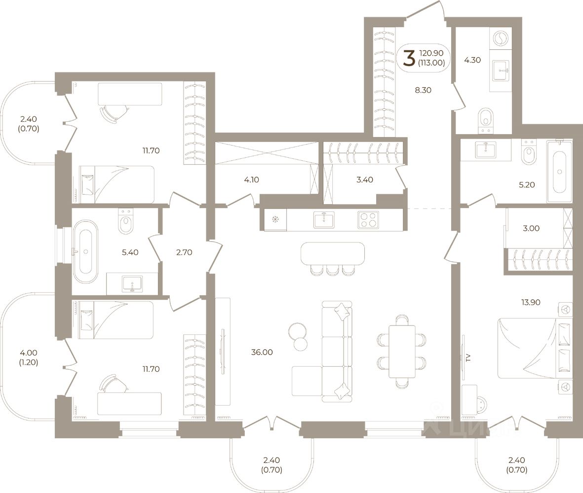 Продаётся 3-комнатная квартира в строящемся доме (Мира,70 (Корпус 1)), срок сдачи: III-кв. 2028, общей площадью 113 кв.м., на 7 этаже. Здесь стены - это не границы, а связующая нить времен.