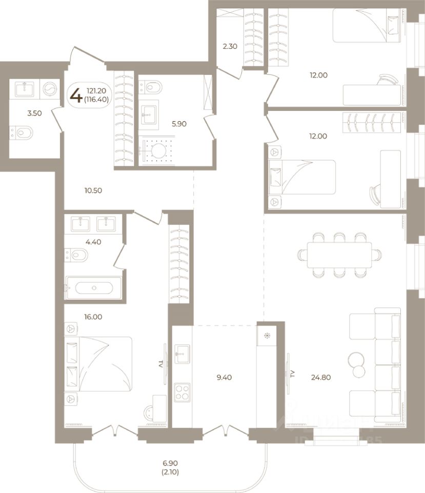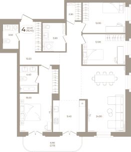 Продаётся 4-комнатная квартира в строящемся доме (Мира,70 (Корпус 1)), срок сдачи: III-кв. 2028, общей площадью 116.4 кв.м., на 8 этаже. Здесь стены - это не границы, а связующая нить времен.