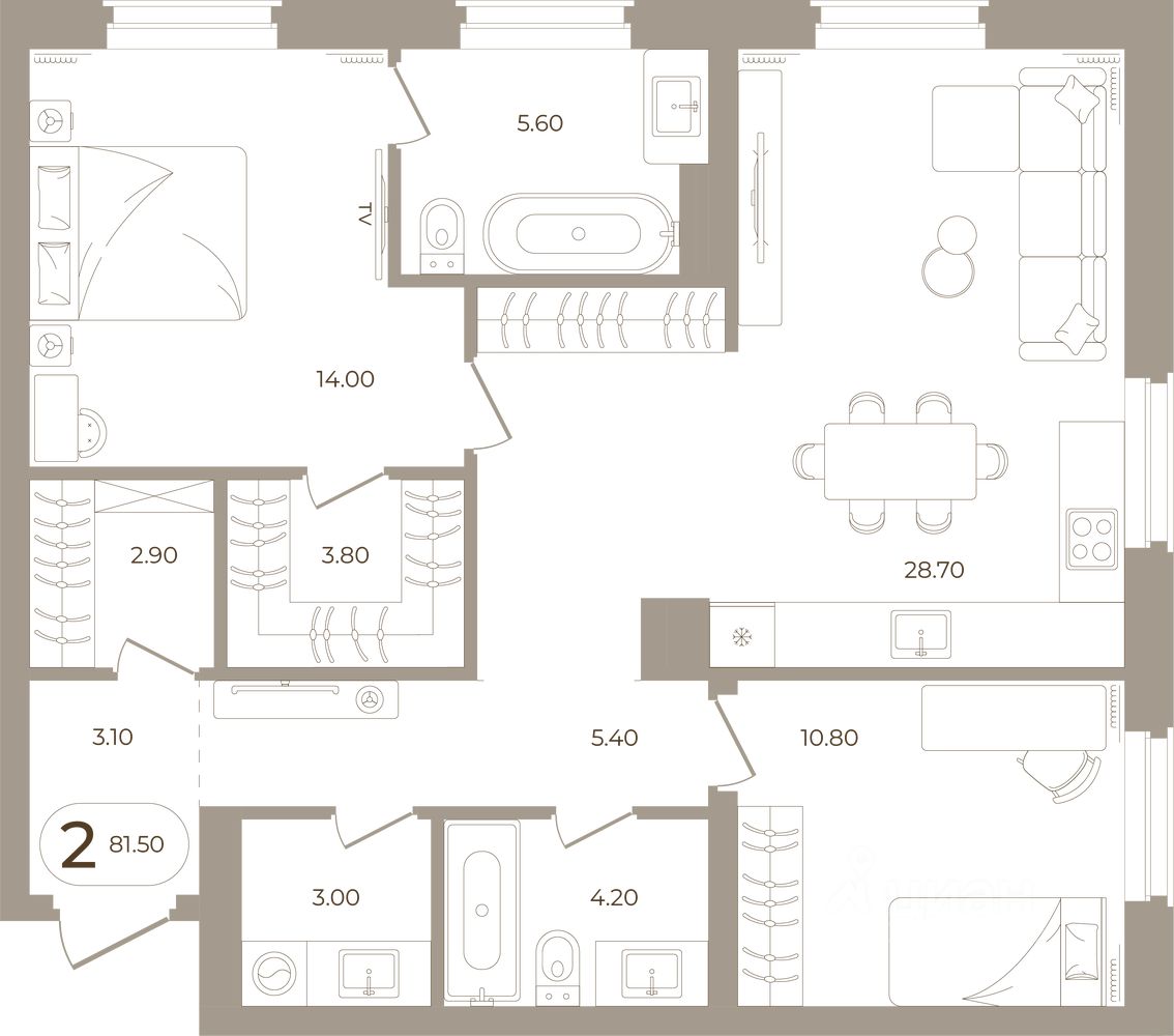 Продаётся 2-комнатная квартира в строящемся доме (Мира,70 (Корпус 1)), срок сдачи: III-кв. 2028, общей площадью 81.5 кв.м., на 2 этаже. Здесь стены - это не границы, а связующая нить времен.