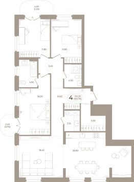 Продаётся 4-комнатная квартира в строящемся доме (Мира,70 (Корпус 1)), срок сдачи: III-кв. 2028, общей площадью 120.7 кв.м., на 5 этаже. Здесь стены - это не границы, а связующая нить времен.