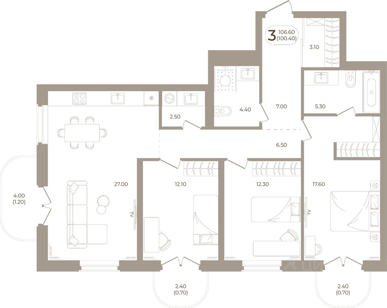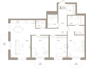 Продаётся 3-комнатная квартира в строящемся доме (Мира,70 (Корпус 1)), срок сдачи: III-кв. 2028, общей площадью 100.4 кв.м., на 7 этаже. Здесь стены - это не границы, а связующая нить времен.