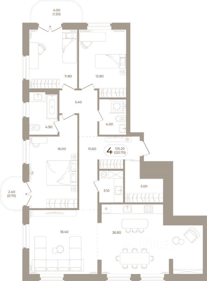 Продаётся 4-комнатная квартира в строящемся доме (Мира,70 (Корпус 1)), срок сдачи: III-кв. 2028, общей площадью 120.7 кв.м., на 7 этаже. Здесь стены - это не границы, а связующая нить времен.