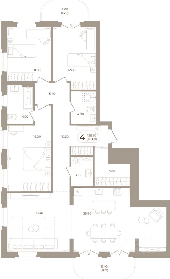 Продаётся 4-комнатная квартира в строящемся доме (Мира,70 (Корпус 1)), срок сдачи: III-кв. 2028, общей площадью 121.6 кв.м., на 8 этаже. Здесь стены - это не границы, а связующая нить времен.