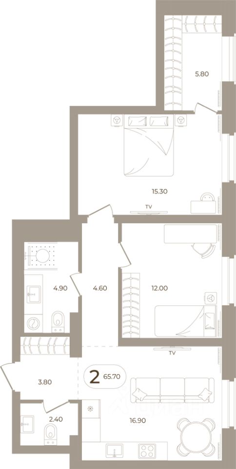 Продаётся 2-комнатная квартира в строящемся доме (Мира,70 (Корпус 1)), срок сдачи: III-кв. 2028, общей площадью 65.7 кв.м., на 2 этаже. Здесь стены - это не границы, а связующая нить времен.
