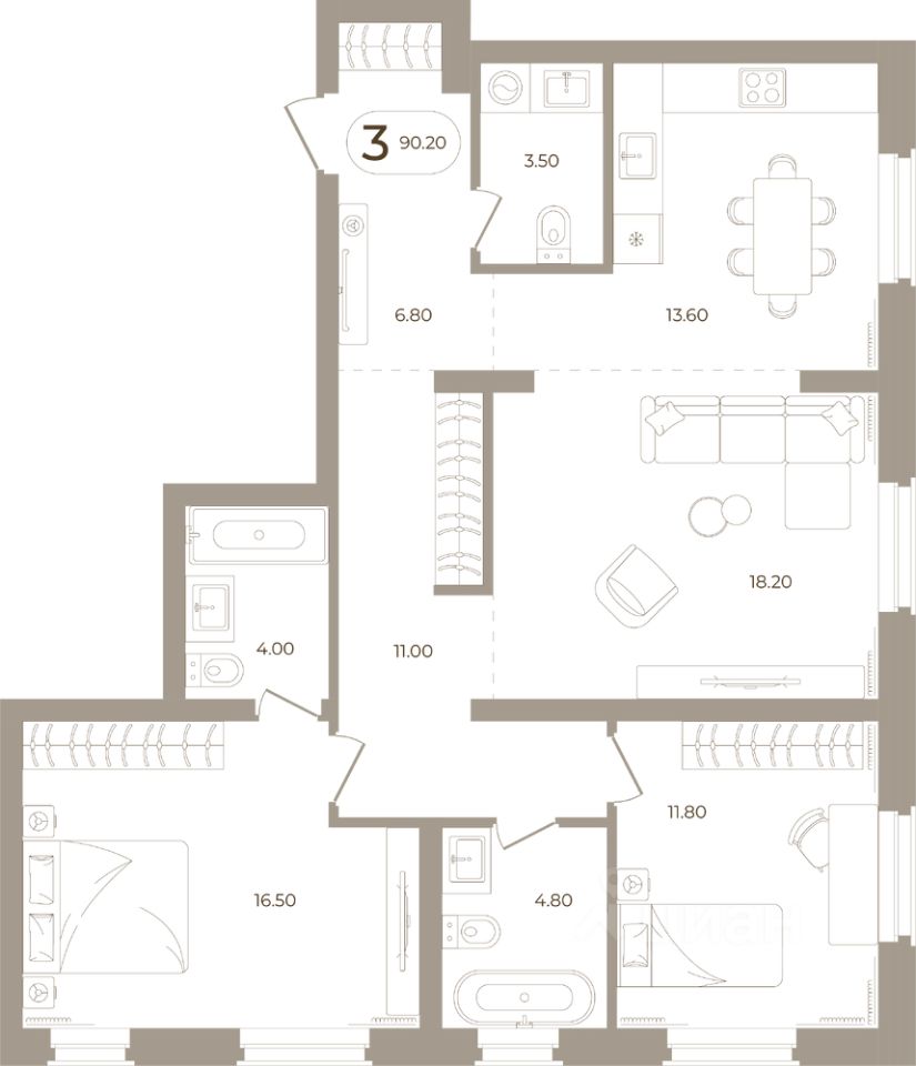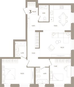 Продаётся 3-комнатная квартира в строящемся доме (Мира,70 (Корпус 1)), срок сдачи: III-кв. 2028, общей площадью 90.2 кв.м., на 2 этаже. Здесь стены - это не границы, а связующая нить времен.